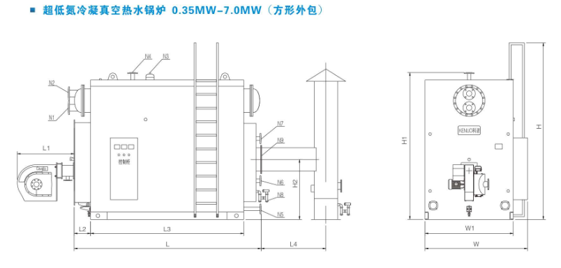 WZK型低氮(NOX<30-50mg/m3)冷凝燃氣真空熱水鍋爐外形尺寸-示意圖